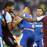 The set-to was instigated by a rash challenge from Greenwood on Villa midfielder Amadou Onana. The ex-United man was late in chopping the Belgian midfielder down from behind. As Greenwood and Onana started to lean on each other, Mings broke the two up before grabbing the Marseille striker by the collar and swinging him around as both sets of players piled in. Greenwood’s jersey was torn as result.